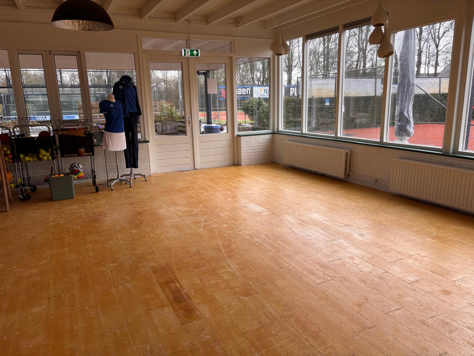 Douwe en Gerrit hebben vandaag een enorme klus er doorheen getrokken. De hele oude vloer is al verwijderd en het oude meubilair is vanmorgen afgevoerd. Betekent dat we een dag vóór de aangekondigde donderdag 19 februari de kantine al gaan sluiten. We kunnen er niet meer zitten en op de kale vloer moet zo weinig mogelijk gelopen worden.